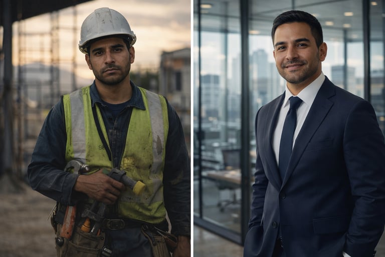 “La verdad, cuando llegué a Estados Unidos empecé trabajando de roofer, haciendo techos. Era trabajo pesado, puro sol, cansado todo el día… y pues el inglés casi no lo hablaba.
